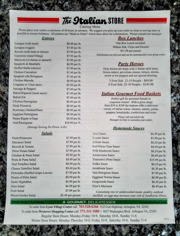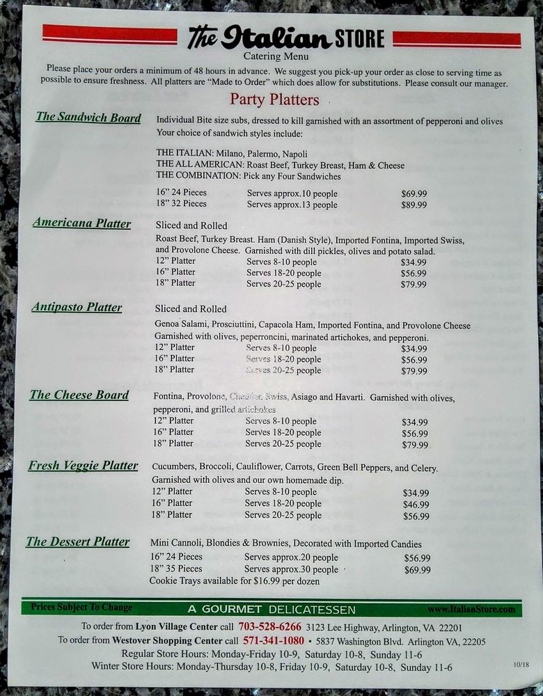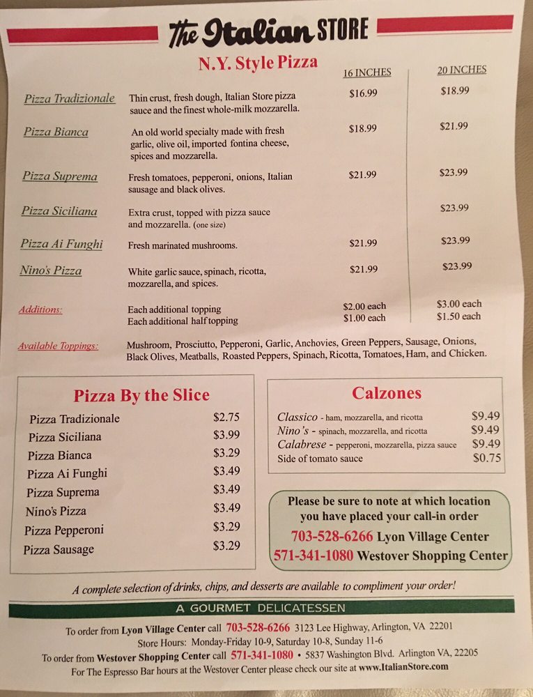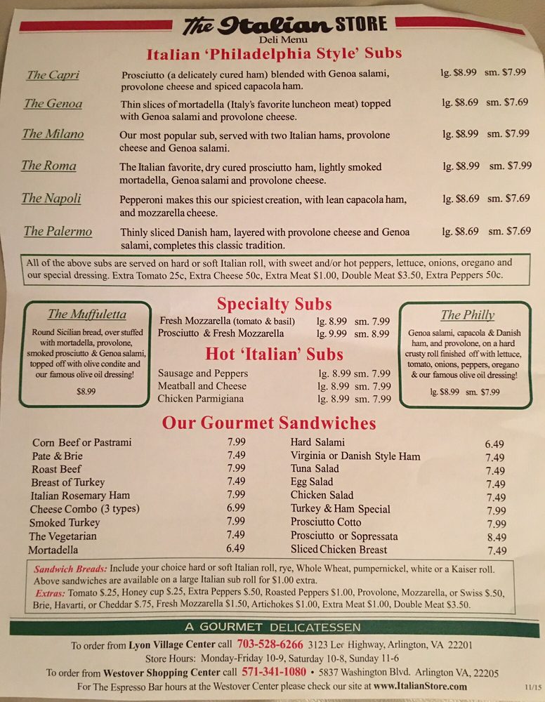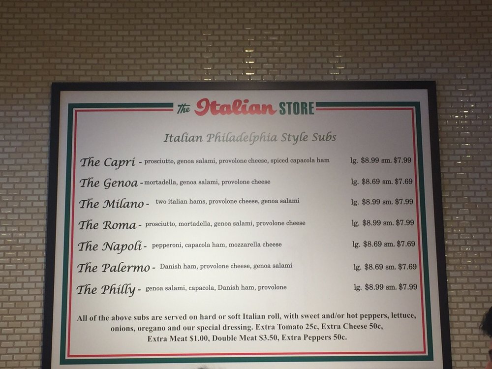 The Italian Store Menu (2025 Update)
